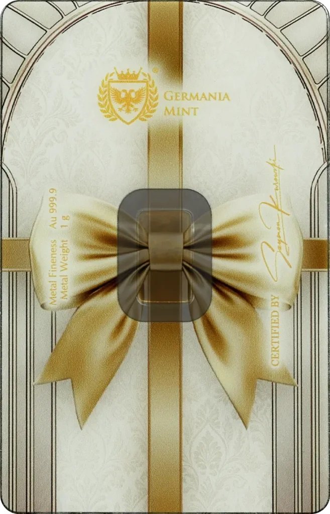 Šis 1 gramo gryno aukso luitas „Geriausi linkėjimai“, nukaldintas Germania Mint kalykloje, sukurtas bet kokiai ypatingai progai.