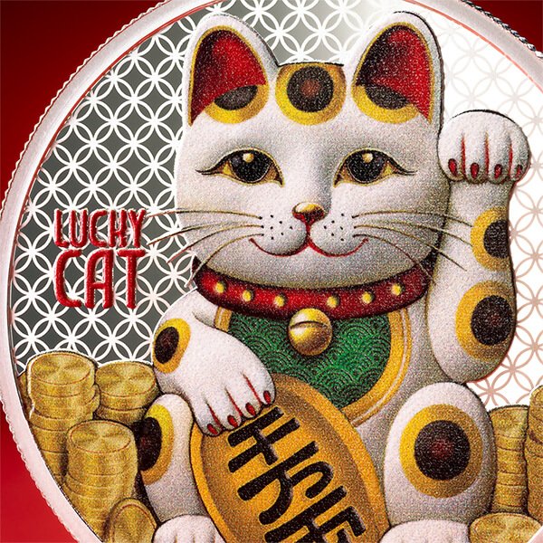 Moneta nukaldinta iš 999 prabos gryno sidabro. Ji spinduliuoja sėkmės dvasią dėl skaitmeninio paauksavimo ir spaudos, leidžiančių perteikti Maneki-neko atvaizdą ryškiomis detalėmis ir švytinčiais auksiniais akcentais. Kviečiantis katės gestas ir spindinti kompozicija įkūnija optimizmą, džiaugsmą ir teigiamą energiją, bei pačią „Sėkmės monetų“ kolekcijos esmę.