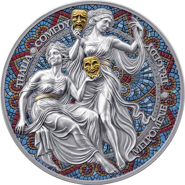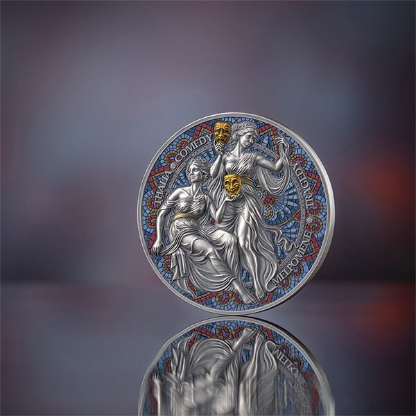 Sidabrinė moneta Melpomenė ir Talija iš serijos Devynios mūzos 2 oz