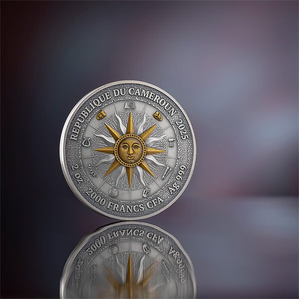 Ši 2 oz sidabrinė moneta perteikia ryškų kontrastą: vienoje kaukėje – liūdesys, kitoje – džiaugsmas.