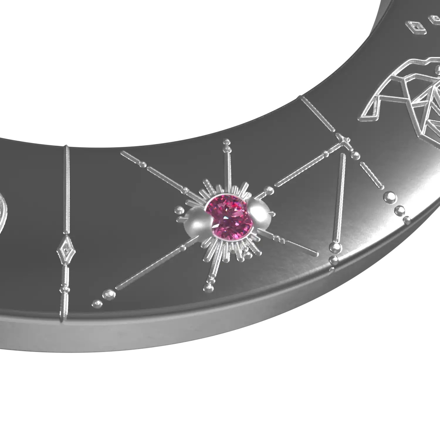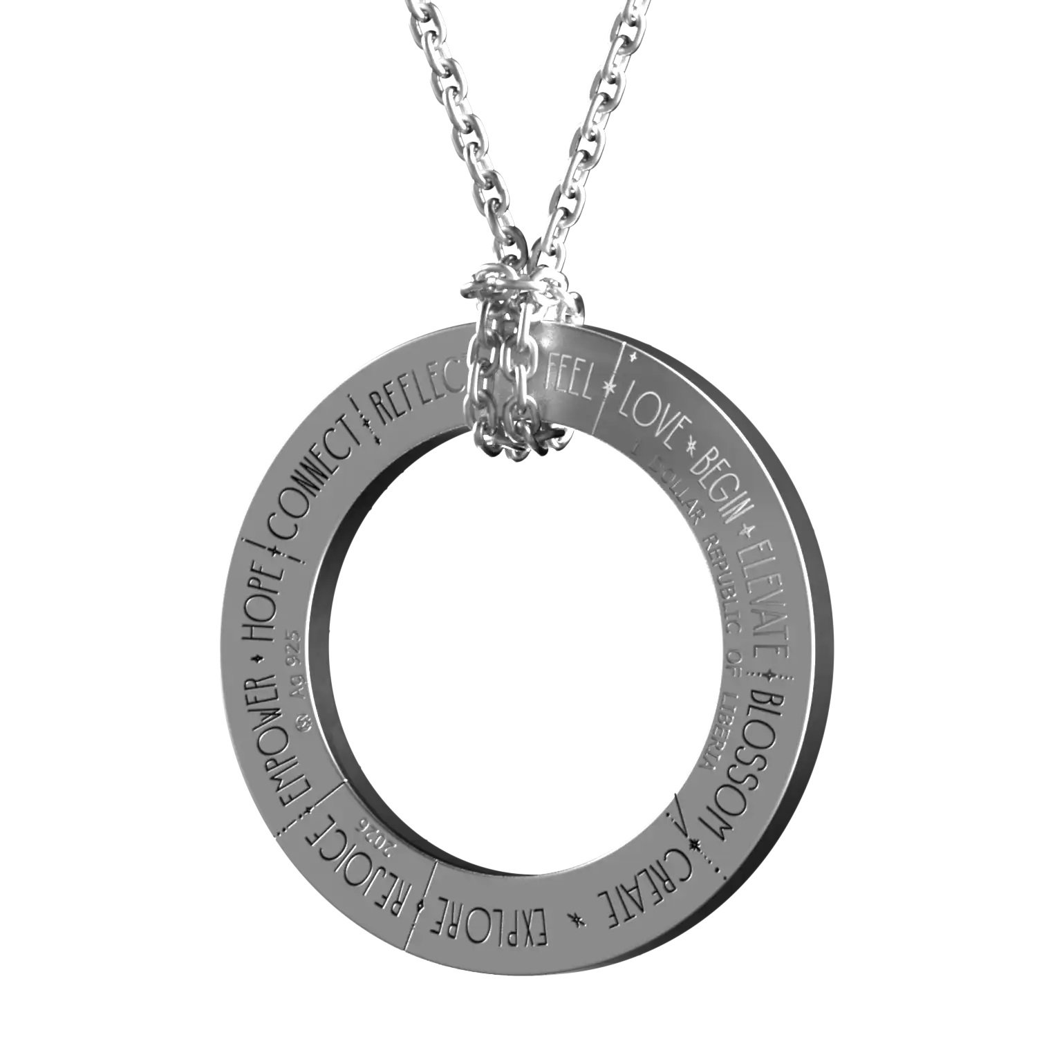 Sidabrinė, apvali rato forma įkūnija amžinąjį, ciklišką gyvenimo ritmą: niekad nesibaigiantį atsinaujinimą, judėjimą ir nuolatinį augimą, kartu kviečiantį atrasti savo vidinę pusiausvyrą.