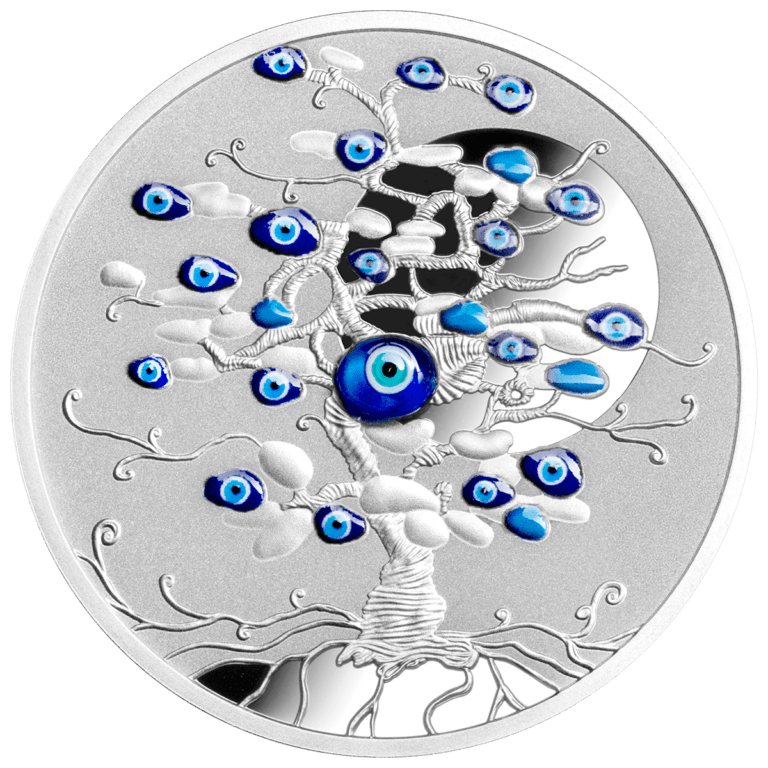 Ši išskirtinė sidabrinė moneta sujungia akies simboliką ir gamtos galią. Jos dizaine akis įpinta į sudėtingą Gyvybės medžio raštą, simbolizuojantį dvasinę stiprybę, pusiausvyrą ir atsinaujinimą.