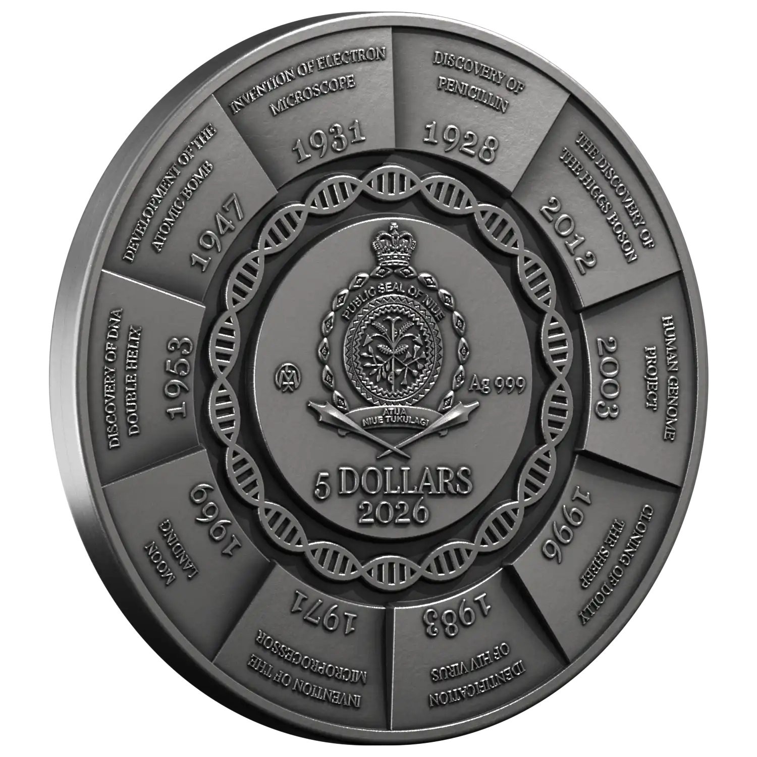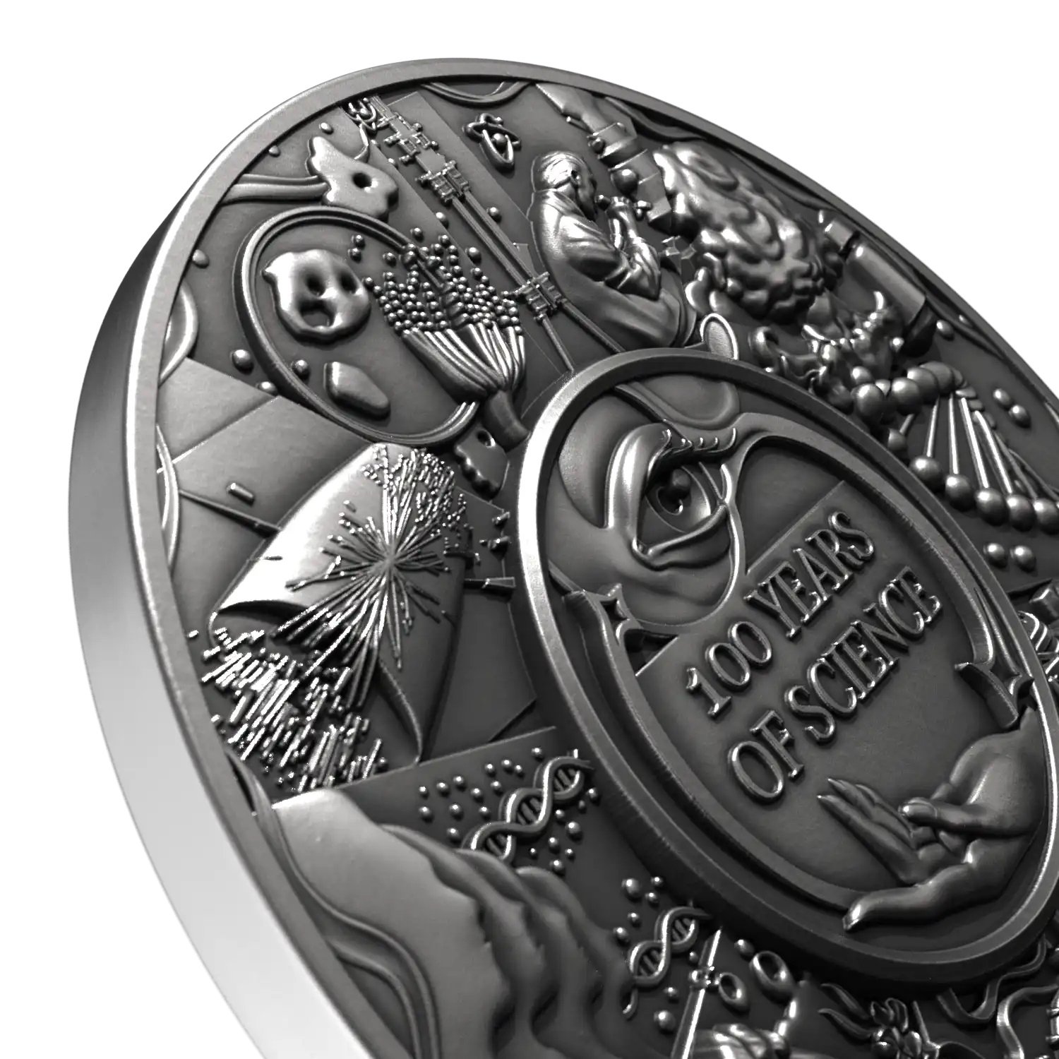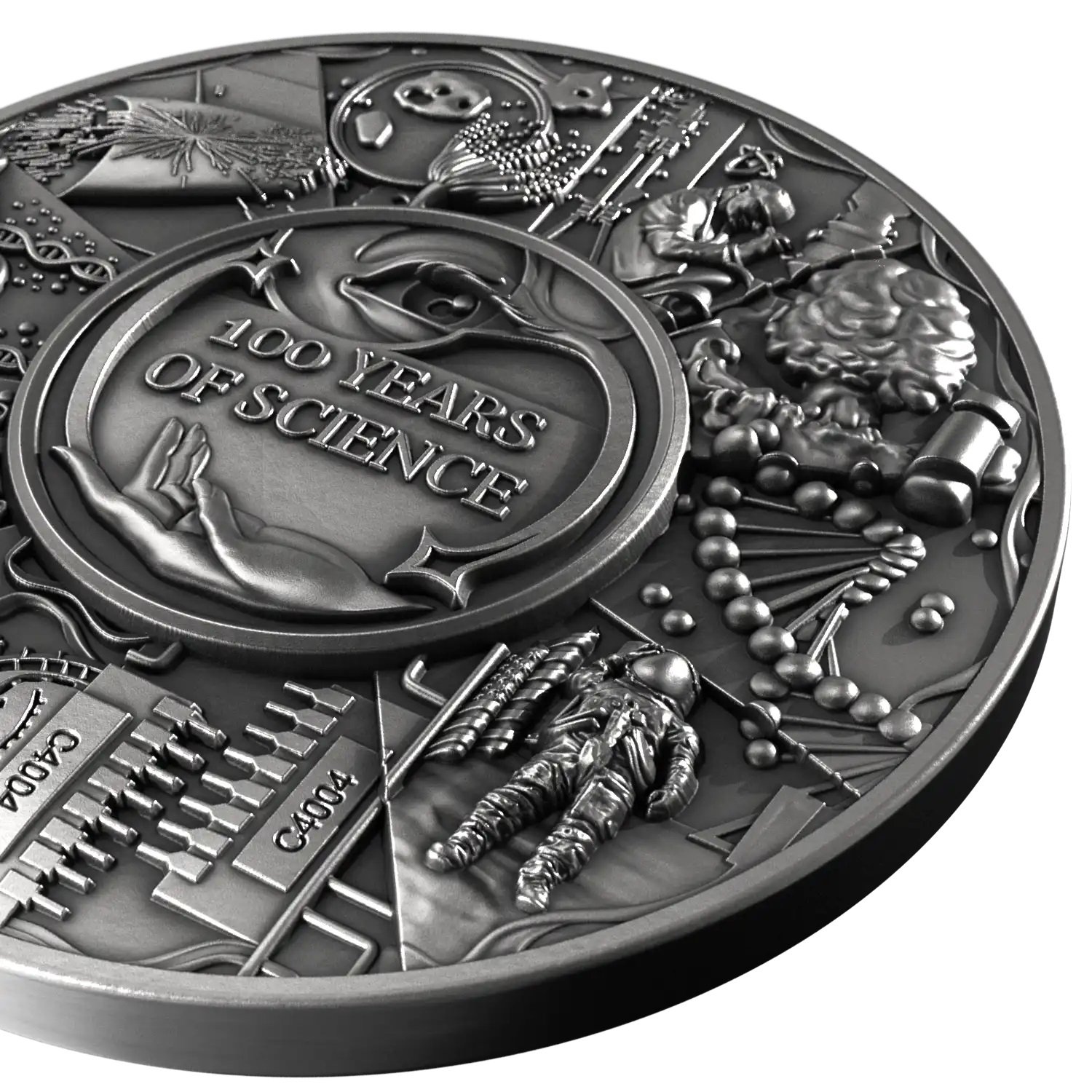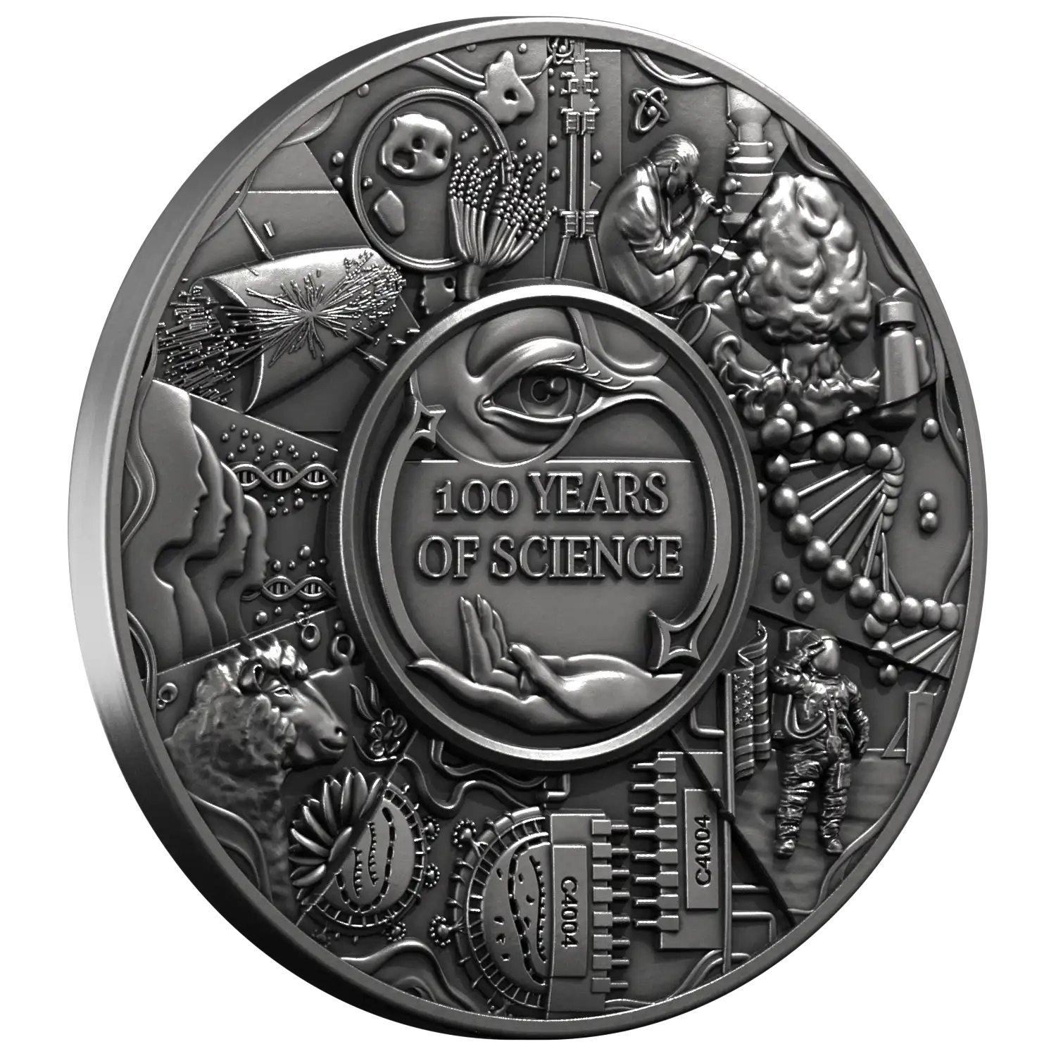 Ši šimtmečio moneta skirta mokslui, kuris dažnai vyksta tyliai, tačiau palieka didelį pėdsaką mūsų kasdienybėje:nuo to, kaip gydome ligas, kaip matome pasaulį, kaip kuriame technologijas ir kaip suprantame gyvybę.