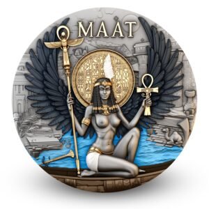 Moneta nukaldinta iš gryno sidabro, subtiliai įamžinant kiekvieną TOTO simbolinę detalę. Paauksavimas išryškina jo dieviškąją galią, o UV spauda bei sodriai mėlyni akcentai kuria paslaptingumo ir išminties atmosferą – būtiną tikrajai tiesai.